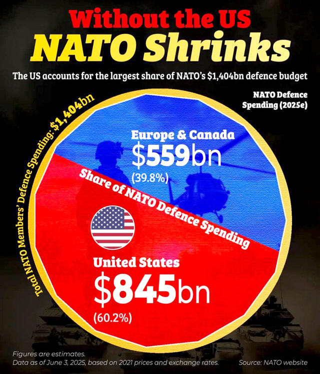 Без американских расходов на оборону общий военный бюджет НАТО сократился бы более чем вдвое, что значительно снизило бы совокупный потенциал альянса.