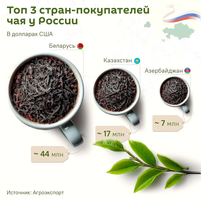 Беларусь, Казахстан и Азербайджан оказались в лидерах по поставкам российского чая в 2025 году