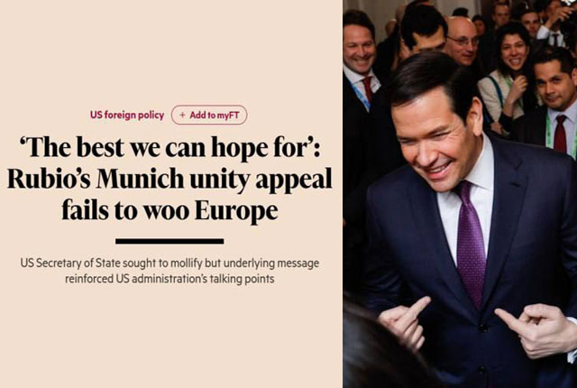 В Европе не вызвало эйфории вчерашнее выступление госсекретаря США Рубио, пишет Financial Times со ссылкой на европейских чиновников, присутствовавших на Мюнхенской конференции.