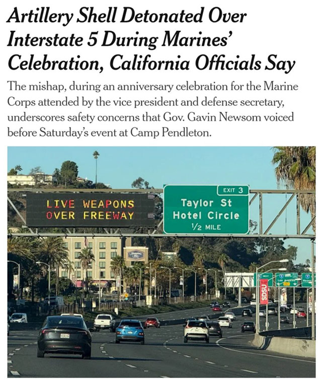 155-миллиметровый артиллерийский снаряд взорвался во время показательной стрельбы в Калифорнии, приуроченной к 250-летию корпуса морской пехоты, куда приехал вице-президент.