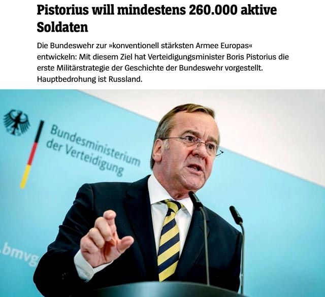 «Мы преобразуем бундесвер в самую сильную конвенциональную армию Европы. В краткосрочной перспективе мы повышаем нашу обороноспособность, в среднесрочной — стремимся к значительному наращиванию потенциала, а в долгосрочной — обеспечим технологическое превосходство», — заявил Писториус.