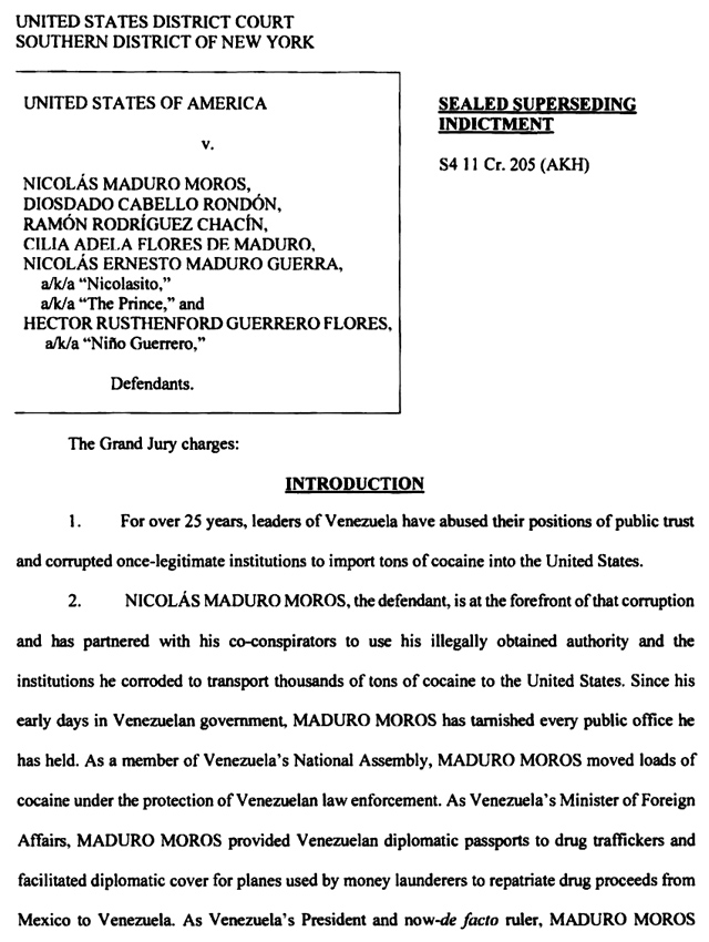 Домой Новости Мир Генпрокурор США опубликовала обвинительное заключение Мадуро и другим венесуэльцам