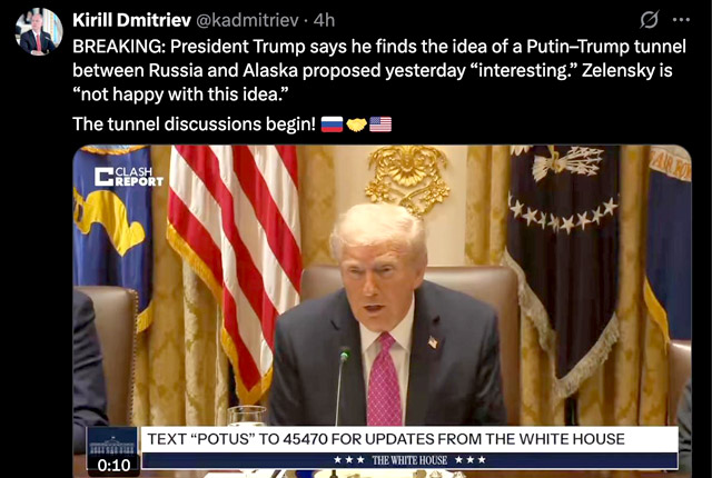 Он отметил, что РФПИ уже инвестировал и построил железнодорожный мост между Россией и Китаем. Теперь пришло время «сделать больше и впервые в истории человечества соединить Евразию и Северную Америку».