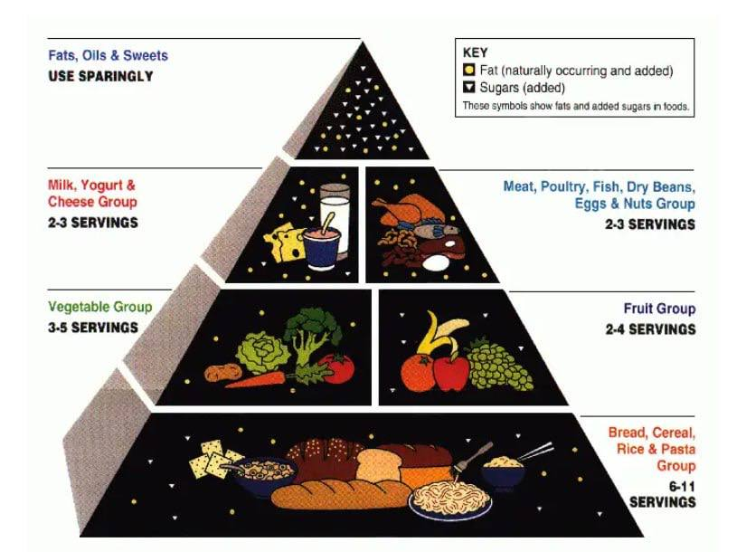 Если раньше американцам рекомендовали отдавать предпочтение крупам и хлебу, к которым предполагалось добавлять фрукты и овощи, то теперь их место заняли стейки и молочные изделия, а крупы и хлеб переместили в самый низ пирамиды. Слоган новой пирамиды — «ешьте настоящую еду». Он отсылает к проблеме с питанием многих американцев, основу рациона которых составляют полуфабрикаты, вызывающие проблемы со здоровьем при длительном употреблении.