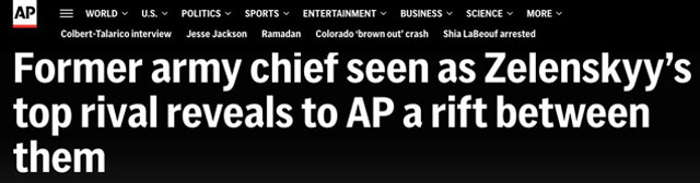 Домой Новости Мир Залужный в интервью AP рассказал о «глубоком расколе» между ним и Зеленским,...