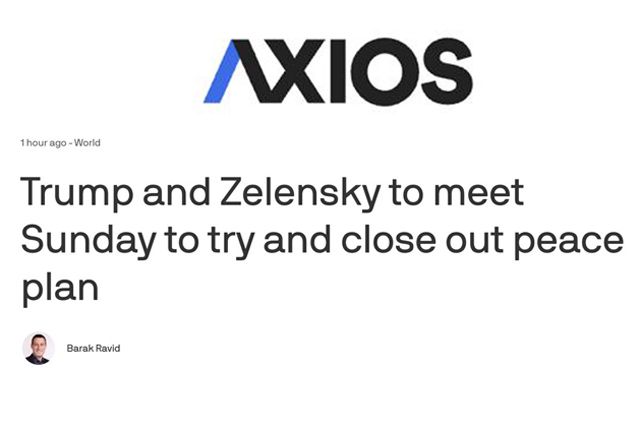 Запланированная встреча Зеленского и Трампа в воскресенье свидетельствует о значительном прогрессе в переговорах, пишет Axios