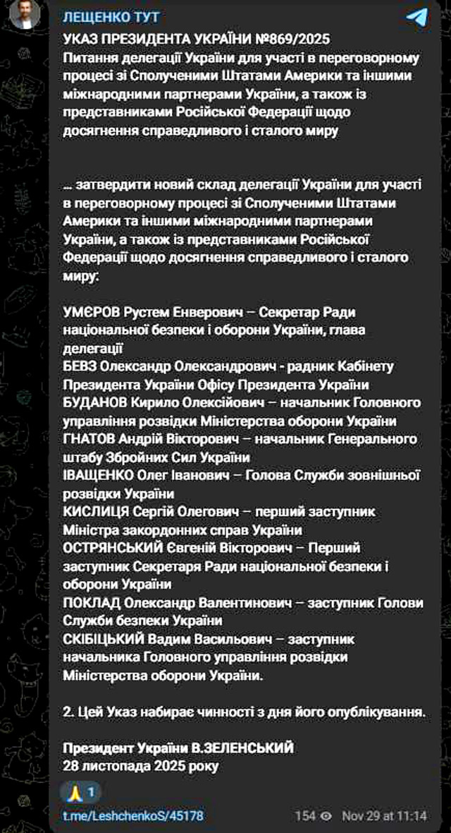 Зеленский назначил Умерова вместо Ермака главой делегации на переговорах по мирному урегулированию