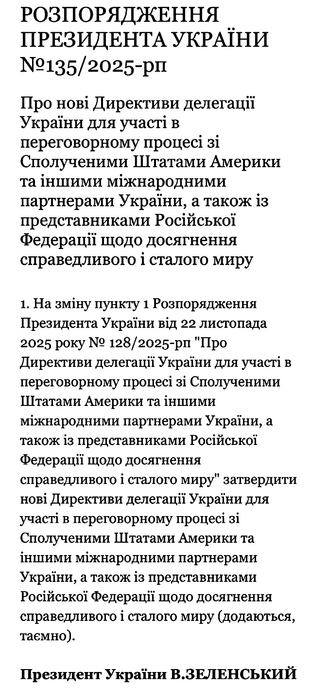Зеленский утвердил тайные директивы для украинской делегации на переговорах с США и РФ