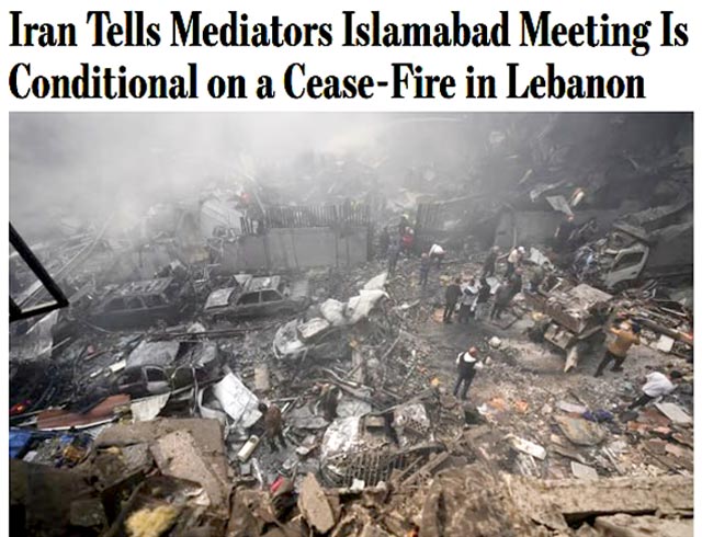 Тегеран сообщил региональным посредникам, что его участие в переговорах с представителями США в Исламабаде возможно только при условии прекращения огня в Ливане, сообщили источники, знакомые с ситуацией. В противном случае Иран также может пересмотреть решение об открытии Ормузского пролива.