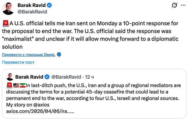Американский чиновник заявил журналисту Axios Бараку Равиду, что ответ Ирана был «максималистским» и неясно, позволит ли он продвинуться к дипломатическому решению.