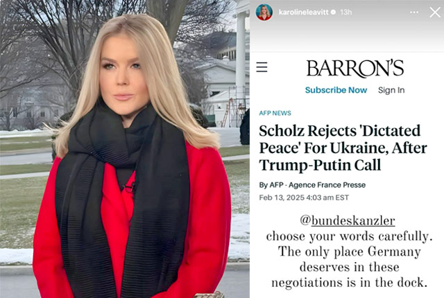 Новый пресс-секретарь белого дома Каролина Ливитт отреагировала на комментарий Шольца о переговорах Путина и Трампа без участия Германии.