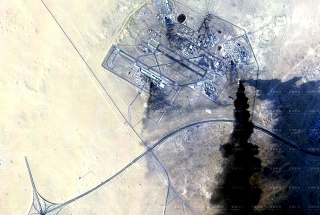 Китай опубликовал спутниковый снимок американской авиабазы Али-аль-Салем в Кувейте после прилета иранских баллистических ракет. На снимке видны разрушения и пожар на территории базы.