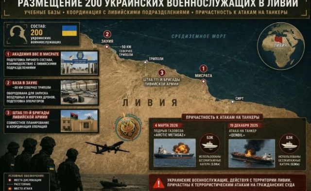 Международное французское радио (Radio France IIternationale, RFI) провело расследование, выяснив, что дислоцированная на трех военных базах в Ливии с одобрения ее властей украинская группа 4 марта этого года организовала теракт с подрывом БЭКами газовоза Arctic Metagaz в Средиземном море у берегов Ливии. Также был атакован танкер Qendil между Грецией и Ливией 19 декабря 2025 года.