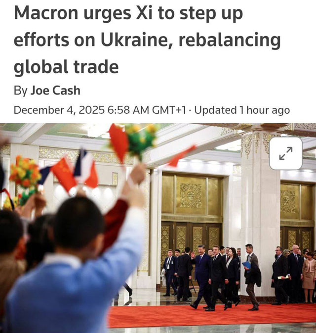 Макрон на встрече с Си: я надеюсь, что Китай присоединится к нашему призыву и нашим усилиям, чтобы как можно скорее добиться хотя бы прекращения огня в форме моратория на удары по критической инфраструктуре. Это имеет ключевое значение перед будущей зимой, поскольку гражданская инфраструктура Украины, прежде всего энергетическая, остается под обстрелами России.