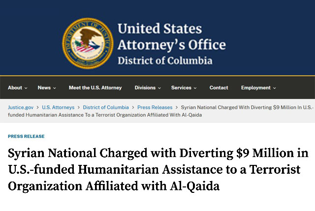 Некий Махмуд Аль Хафьян управлял НКО в Сирии, а деньги получаемые USAID, расходовал на финансирование вооруженных группировок, включая Фронт «Ан-Нусра», связанной с «Аль-Каидой» в Ираке (запрещенные в РФ организации).