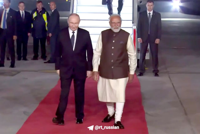 Нарендра Моди тепло поприветствовал Владимира Путина у трапа