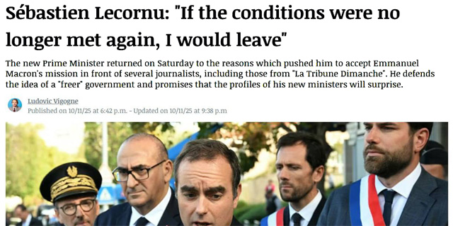 Как Лекорню сказал в интервью французской газете La Tribute Dimanche, он не намерен «заниматься ерундой», и уйдет в отставку, если для работы не будет нужных условий (то есть — если не будет поддержки со стороны парламента).