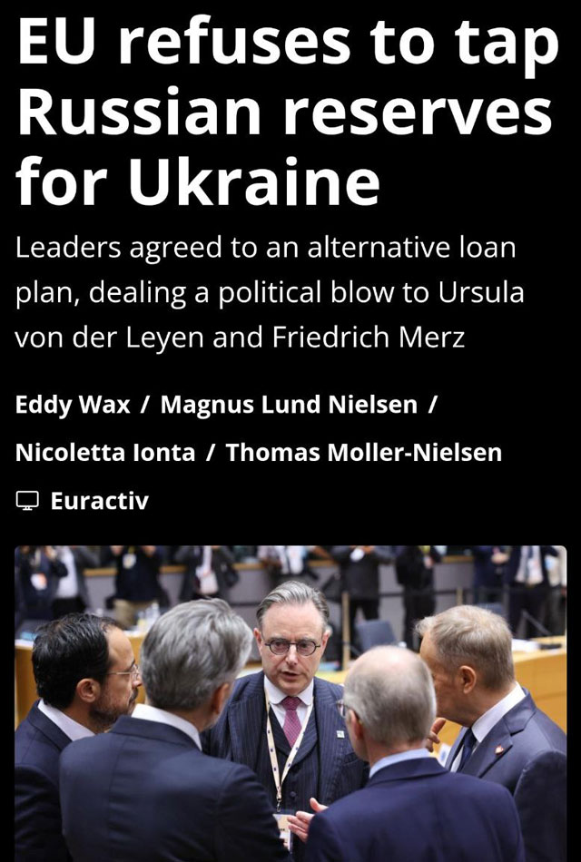 Отказ стран ЕС использовать российские активы для Украины стал политическим ударом для Урсулы фон дер Ляйен и Фридриха Мерца, двух главных сторонников этой схемы.