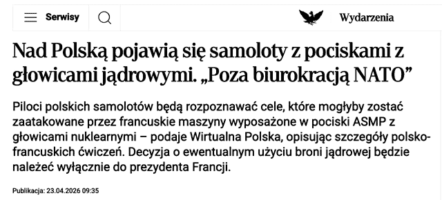 Предполагается, что французские самолеты с боеголовками будут иногда залетать в Польшу, а решение о возможном применении ядерного оружия будет принимать исключительно президент Франции.