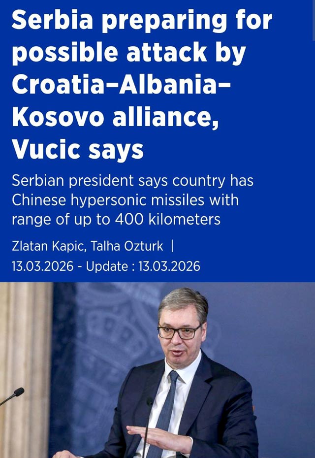 Президент Сербии Вучич заявил, что Албания, Хорватия и Косово формируют военный союз, который Белград рассматривает как подготовку к возможному нападению на страну