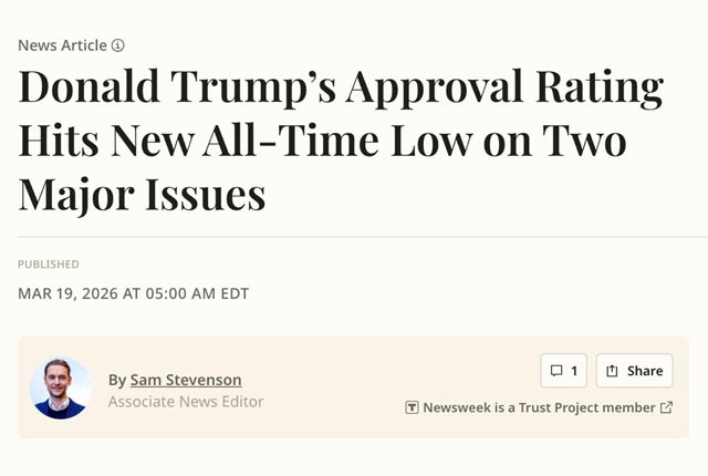 Рейтинг одобрения Трампа в вопросах экономики и стоимости жизни упал до нового исторического минимума, поскольку американцы все больше обеспокоены ростом цен из-за войны с Ираном, сообщает Newsweek.