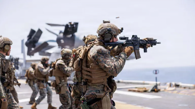 Кроме того, амфибийно-десантная группа во главе с универсальным десантным кораблем «Боксер» с 2,5 тысячи морских пехотинцев и авианосная ударная группа во главе с атомным многоцелевым авианосцем «Джордж Буш» осуществляют переход в зону конфликта.