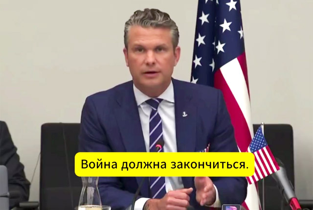 «Под решительным лидерством президента Трампа, особенно в сотрудничестве с нашими европейскими союзниками, мы положим конец войне в Украине. Эта война должна завершиться. Как мы уже видели в Газе и на Ближнем Востоке, президент Трамп умеет добиваться мира и находить возможности даже там, где мир кажется недостижимым. Только он способен сделать это. Эта война началась не при Трампе, но закончится при нём. Настало время воспользоваться этим моментом — твёрдо добиться мира в Украине и принести мир через силу», — заявил Пит Хэгсет.