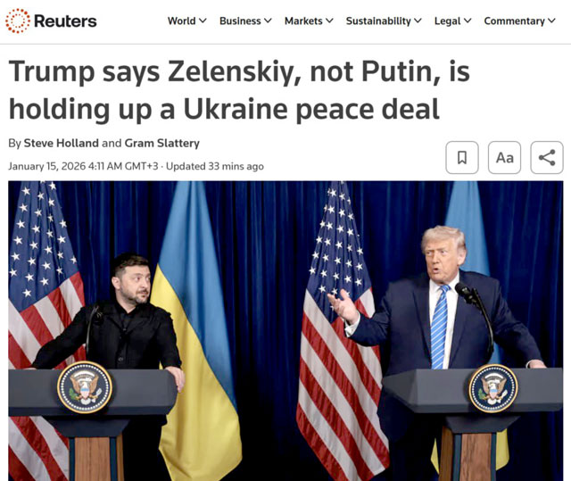 На вопрос, почему конфликт до сих пор не завершен, несмотря на дипломатические усилия Вашингтона, американский президент ответил: «Зеленский». По мнению Трампа, российский лидер Владимир Путин «готов заключить сделку». «Я думаю, что Украина менее готова к заключению сделки».