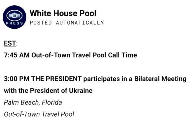 Встреча пройдет в Палм-Бич в 15:00 по местному времени (22:00 по Киеву). Возле этого курорта расположена частная резиденция Трампа Мар-а-Лаго, куда он приехал на выходные.