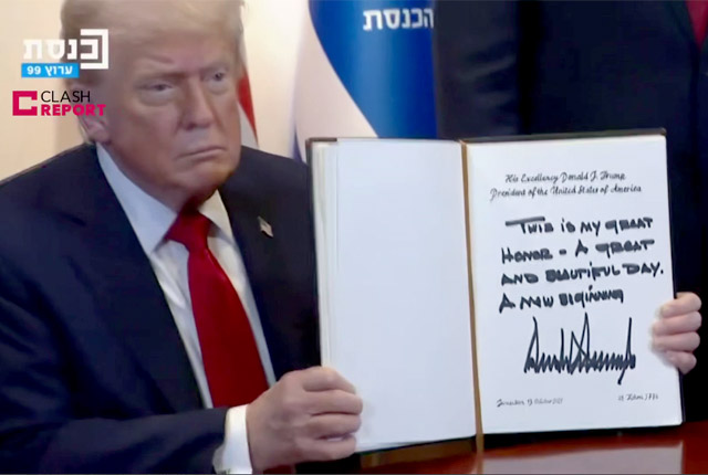 Трамп прибыл в парламент Израиля, объявил, что «война закончилась», и показал мирное соглашение с ХАМАС.