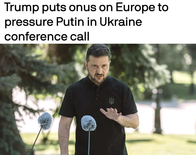 Президент Трамп заявил лидерам европейских стран на виртуальной встрече по Украине в четверг, что они «финансируют войну» за счет закупок российской нефти и должны прекратить поставки из России, а также оказать давление на Китай, чтобы тот сделал то же самое, сообщил изданию представитель Белого дома.